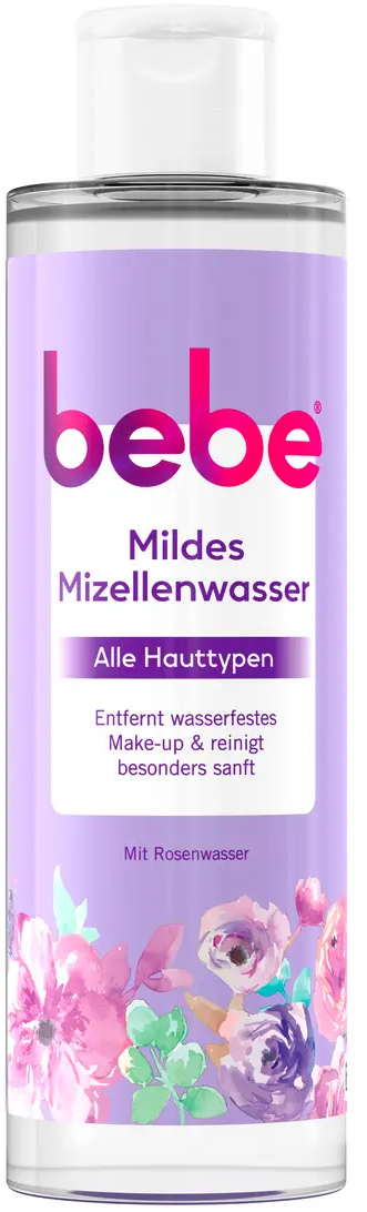Das milde Mizellenwasser von bebe sorgt für eine gründliche und dennoch sanfte Gesichtsreinigung. Mithilfe von feinem Rosenwasser und der effizienten Mizellen-Moleküle, welche die Haut wie ein Magnet von Schmutz- und Make-up-Partikeln befreien, entfernt das Mizellenwasser selbst wasserfestes Make-up problemlos. Dabei bleibt die natürliche Feuchtigkeit deiner Haut bestehen - für ein frisches Hautgefühl!