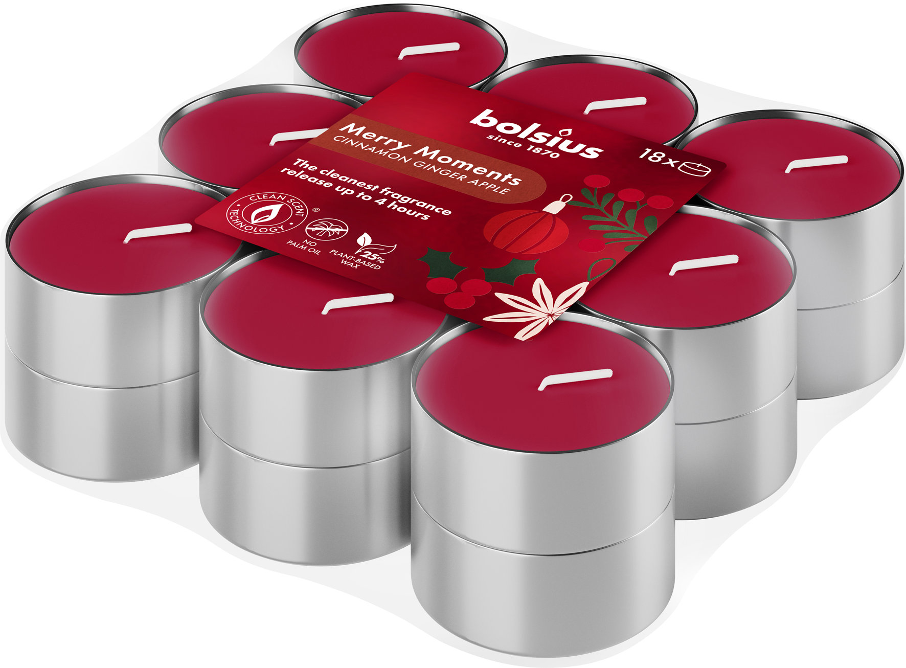 bolsius True Glow Duft-Teelichter Merry Moments, Teelichter 4h / 18er Pack