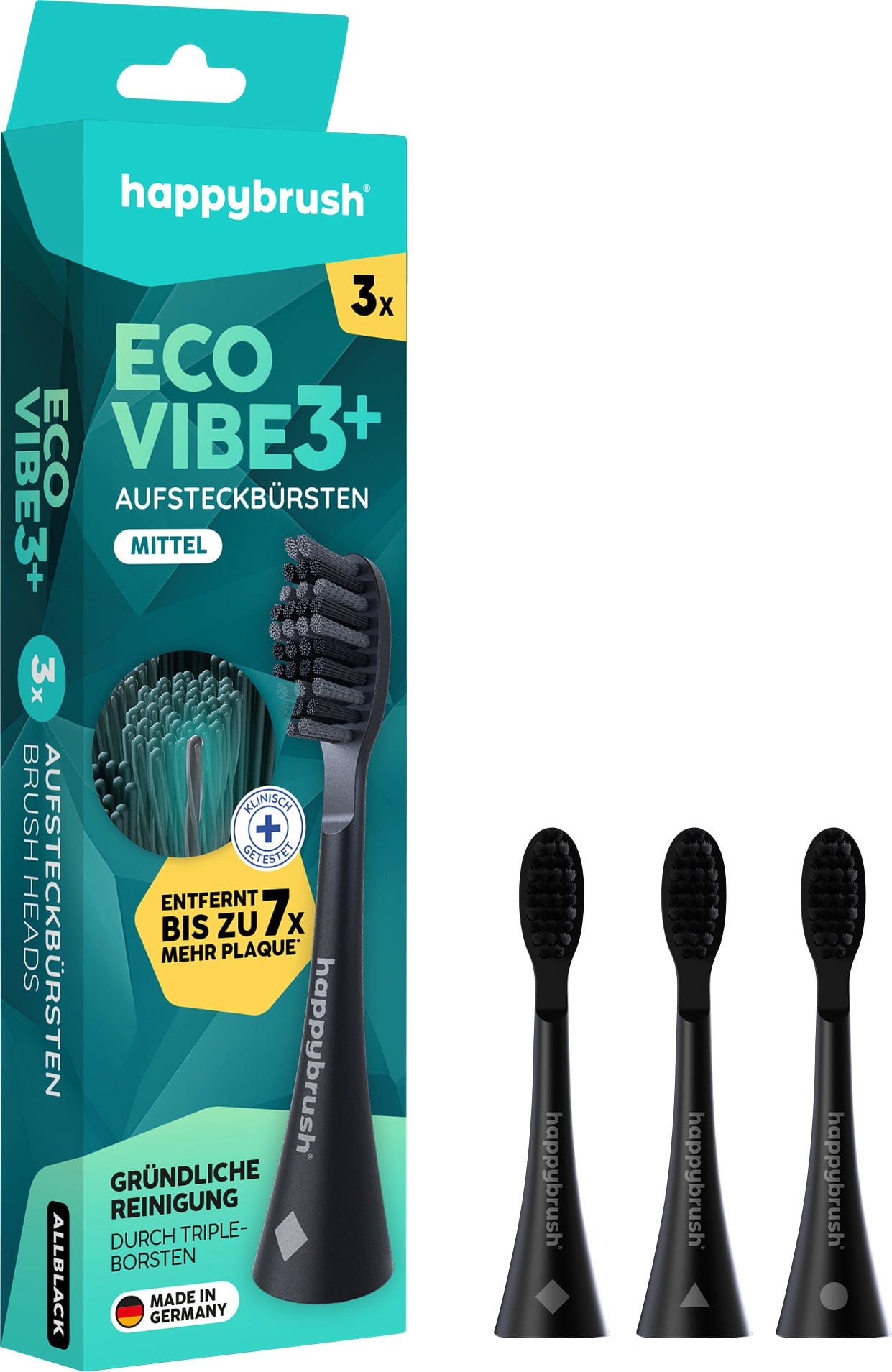 happybrush Eco VIBE 3+ Aufsteckbürsten AllBlack, 3 Stk