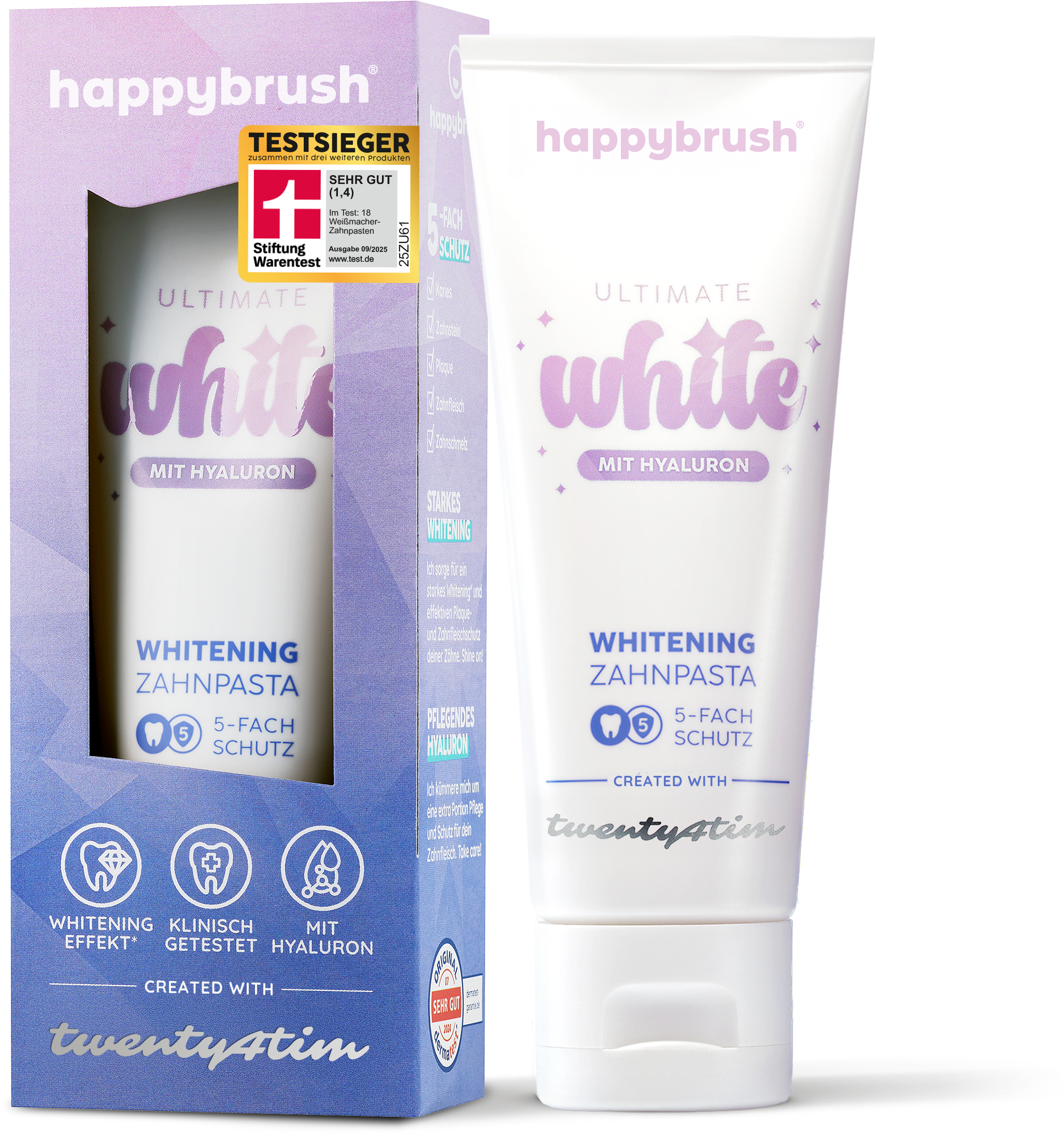 happybrush twenty4tim Ultimate White Whitening Zahnpasta, 75 ml