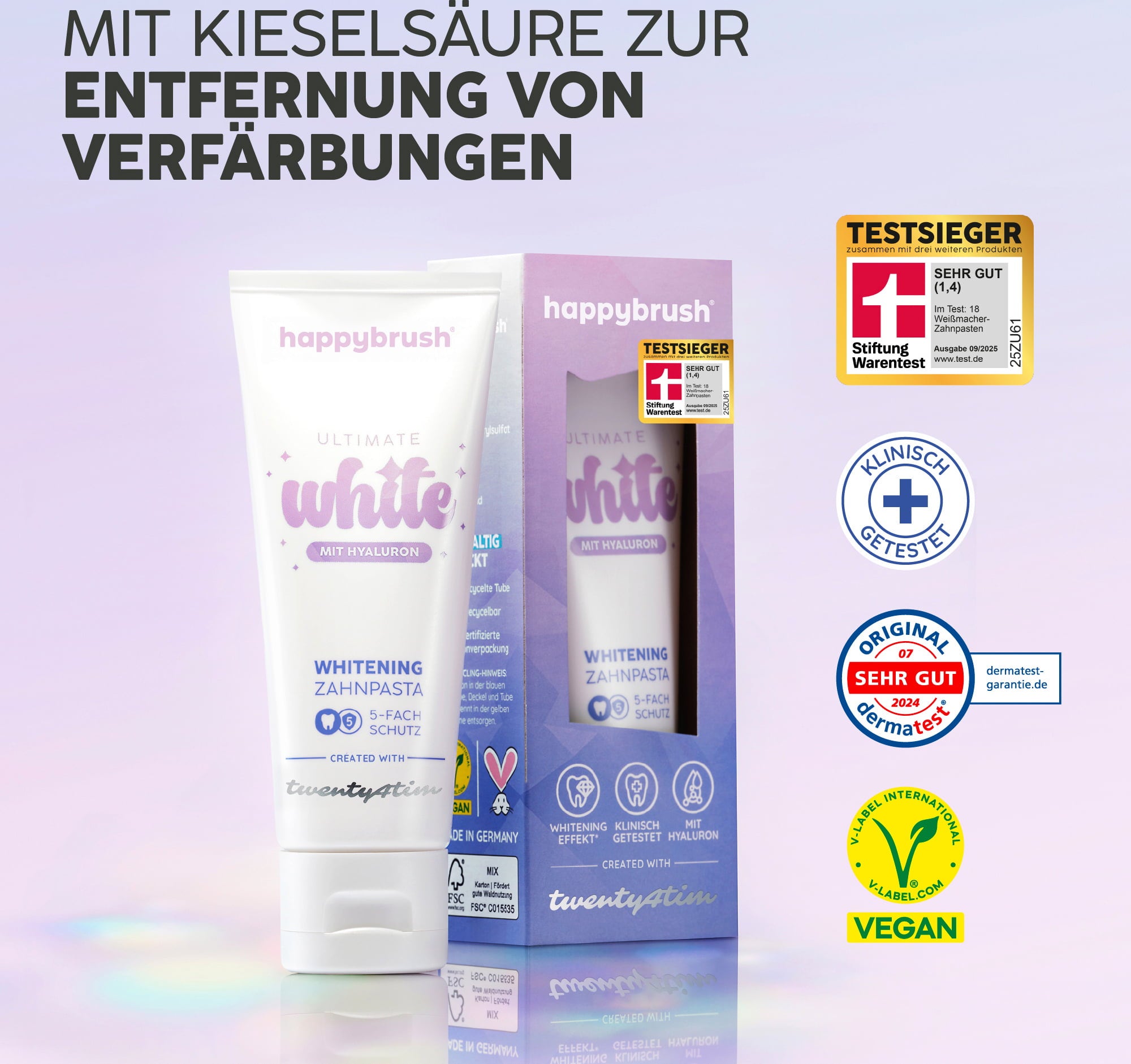 Erfahrungsberichte in Deutsch für happybrush twenty4tim Ultimate White Whitening Zahnpasta